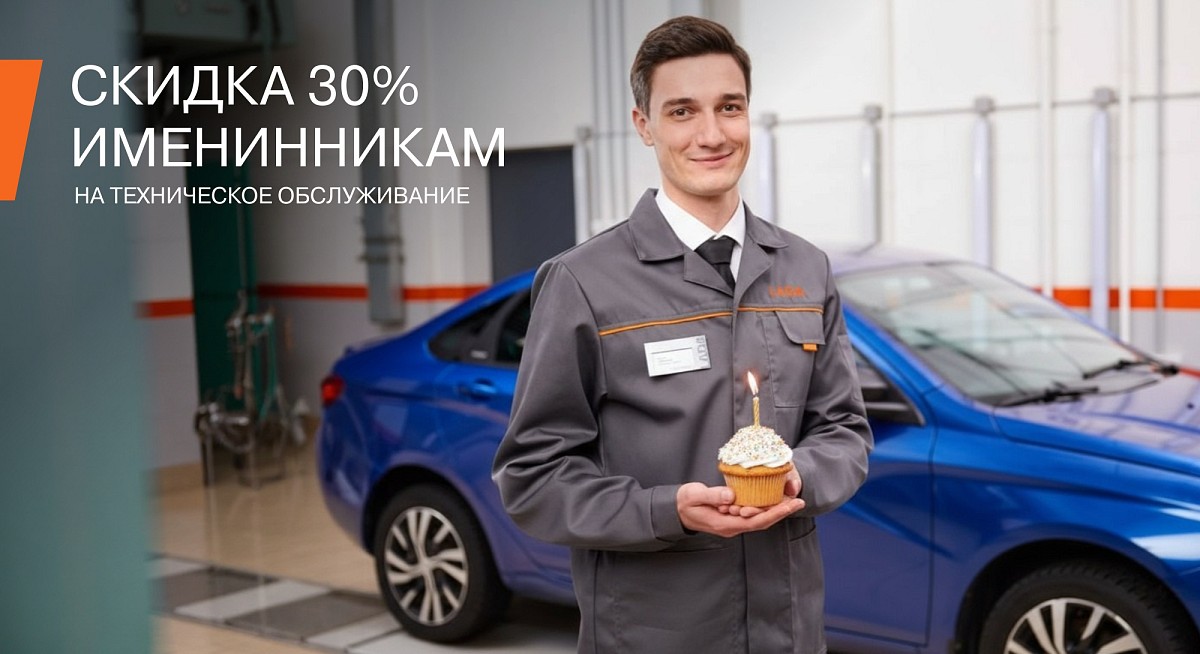 Всем именинникам в День рождения, а также за 3 дня до и после него, дарим скидку 30% на работы по сервису. Скидка действует при обращении в сервис на техническое обслуживание и ремонтные работы при предъявлении водительского удостоверения.