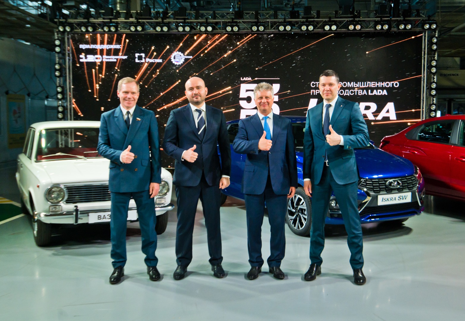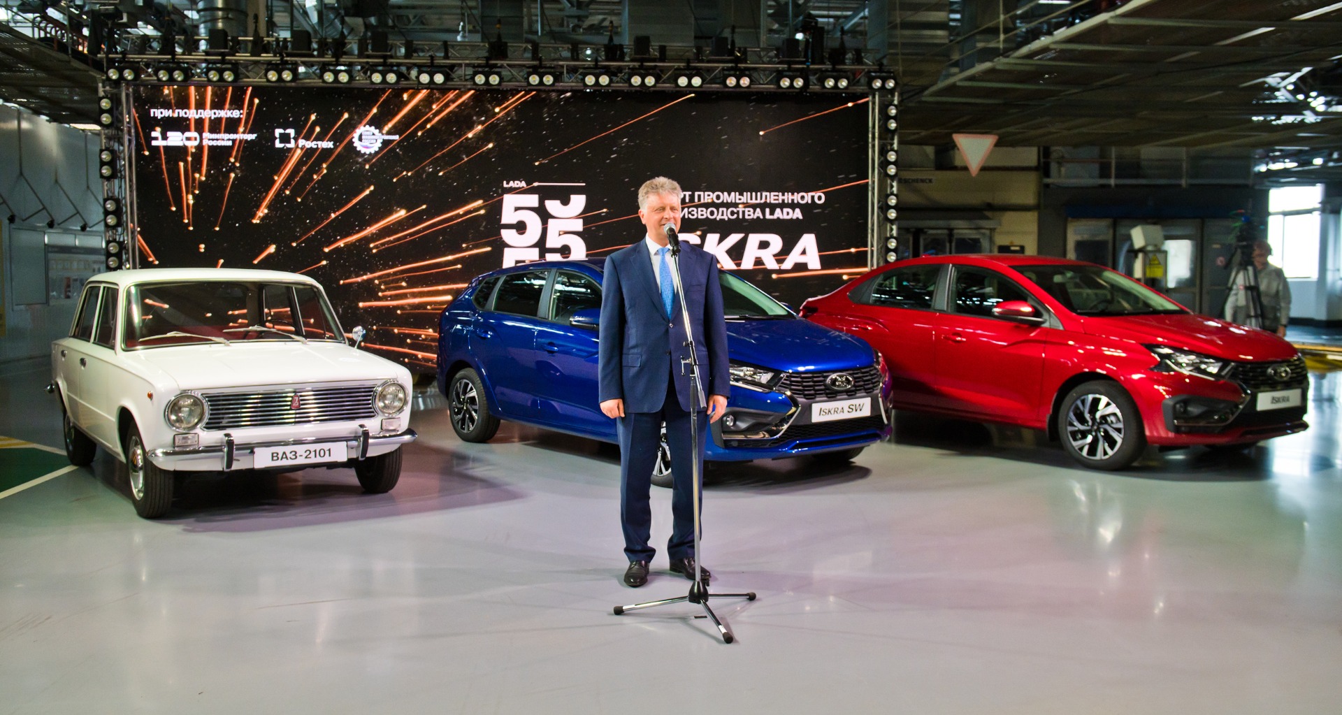 19 апреля 2025 года, в день 55-летия с момента выпуска первого автомобиля, на АО «АВТОВАЗ» состоялся торжественный запуск промышленного производства новой модели LADA Iskra. В рамках церемонии с конвейера сошли первые экземпляры автомобиля — седан в красном цвете и универсал в синем цвете. Вместе с ними к гостям выехал белый ВАЗ-2101, что символизировало цвета государственного флага Российской Федерации и подчеркнуло преемственность поколений отечественного автопрома.